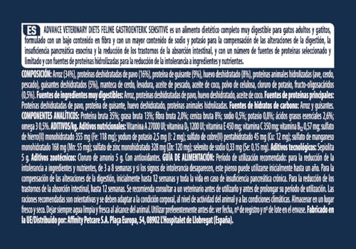 El pienso Advance Veterinary Diets Gastroenteric Sensitive es ideal para gatos adultos con sensibilidad gastrointestinal, asegurando una digestión óptima y reducción de intolerancias.