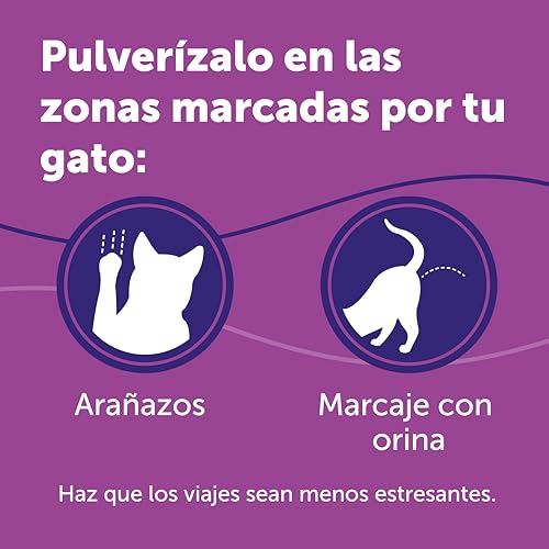 El Spray tranquilizador Feliway para gatos de 60 ml reduce el estrés y la ansiedad, proporcionando un ambiente de calma. Ideal para uso en viajes, mudanzas y visitas al veterinario.