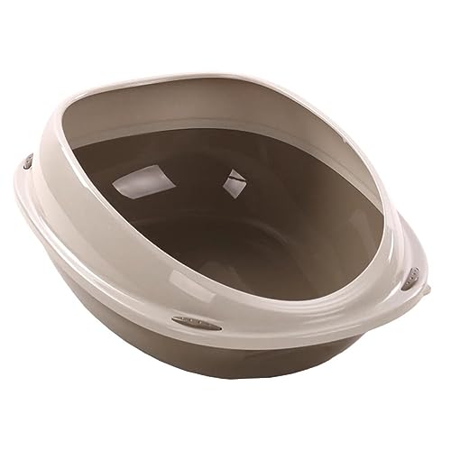 El arenero Flamingo Jota en color topo, hecho de plástico resistente, con un diseño de borde alto y esquinas redondeadas, es ideal para la comodidad y limpieza de tu gato.