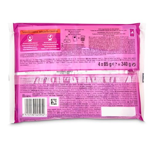 Whiskas – Comida húmeda para gatos + 1año Whiskas selección clásicos buey y pollo 4 x 85 g. 340 g