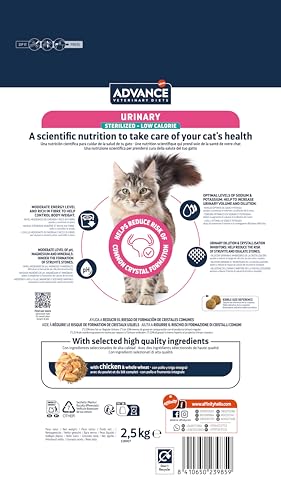 Advance Veterinary Diets – Pienso para gatos adultos Advance Urinary Sterilized Low Calorie Dietas veterinarias. 2,5 Kg