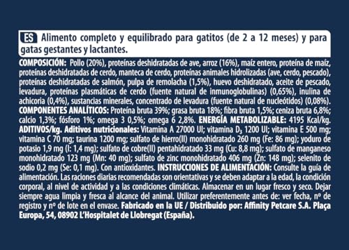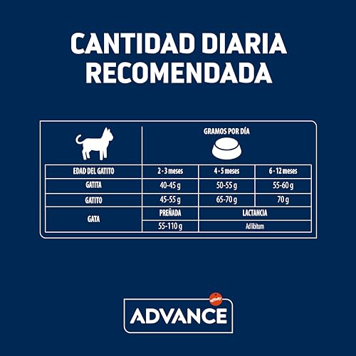 El pienso Advance está formulado específicamente para cubrir las necesidades nutricionales de los gatitos en crecimiento, asegurando un desarrollo óptimo gracias a su contenido balanceado de proteínas, grasas, vitaminas y minerales.
