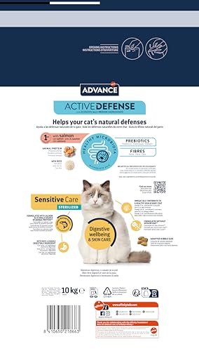Advance – Pienso para gatos adultos Advance Sterilized Sensitive salmón y cebada. 10 Kg