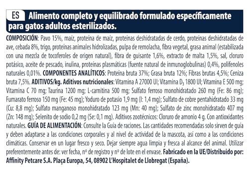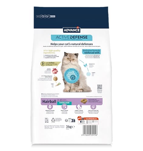 Especificaciones: Advance – Pienso para gatos esterilizados Advance Sterilized Hairball pavo. 3 Kg