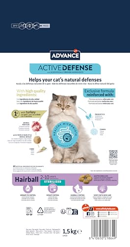Advance – Pienso para gatos esterilizados Advance Sterilized Hairball pavo. 1,5 Kg