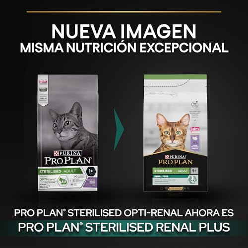 Pienso para gatos esterilizados Purina Pro Plan Renal Plus con sabor a pavo, 1,5 kg. Alto en proteínas y bajo en grasa para mantener la salud óptima de tu gato.