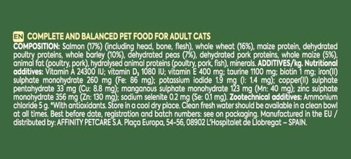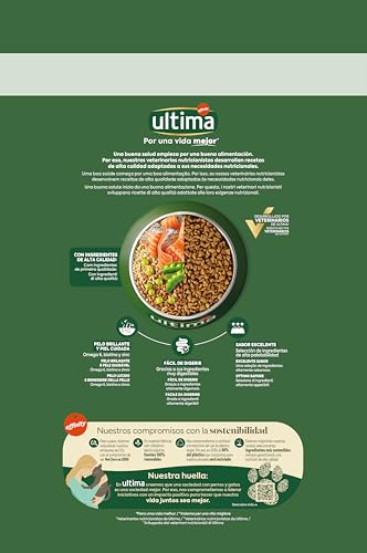 El pienso para gatos adultos Ultima con salmón, arroz y cereales integrales ofrece una nutrición completa y equilibrada para mantener a tu gato en óptima forma física.