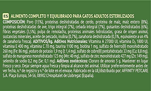 Pienso Ultima para gatos esterilizados, especializado en reducir bolas de pelo, con ingredientes de alta calidad como el pavo para mantener la buena forma física de tu mascota.