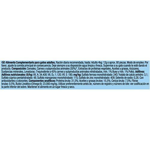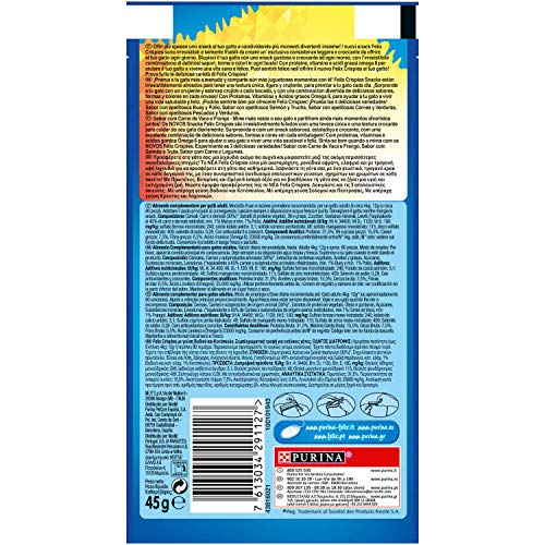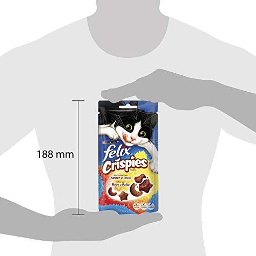Felix Crispies: snacks para gatos con buey y pollo, crujientes y nutritivos, con proteínas, vitaminas y Omega 6.