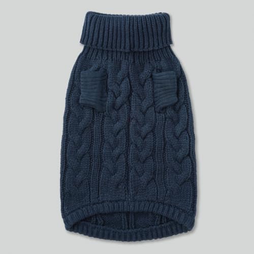 Jersey trenzado para perros, cómodo y elegante, ideal para días fríos. Disponible en color azul, talla 30 cm.