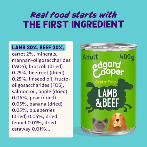 Multipack de comida húmeda Edgard & Cooper para perros adultos, sin cereales y con ingredientes 100% naturales. Incluye 6 latas de deliciosas combinaciones de carne.