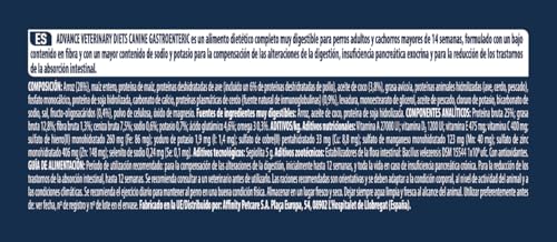 Especificaciones: Advance Veterinary Diets – Pienso para perros cachorros y adultos medianos y grandes Advance Gastro Intestinal Dietas Veterinarias. 3 Kg