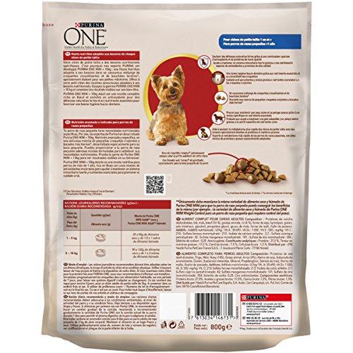 Purina One – Pienso para perros adultos minis Purina One buey y arroz. 800 g