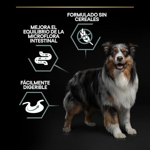 Purina Pro Plan Sensitive Digestion es un pienso sin granos ideal para perros medianos y grandes con digestión sensible, mejorando la flora intestinal y la consistencia de las heces.