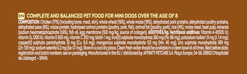 Ultima Pienso para perros senior minis es ideal para mantener la salud y bienestar de perros de razas pequeñas mayores de 8 años, con un delicioso sabor a pollo.