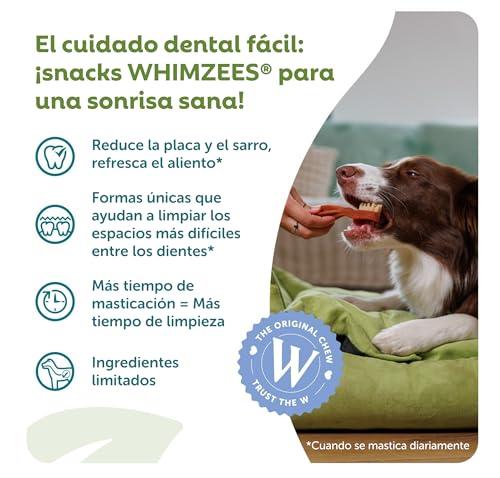 Whimzees son snacks dentales naturales para perros adultos pequeños, perfectos para cuidar la salud bucal y ofrecer un delicioso sabor.