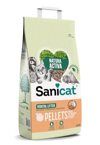 Sanicat – Lecho ecológico Sanicat para gatos, roedores y pájaros Natura Activa pellets de madera 6 kg.